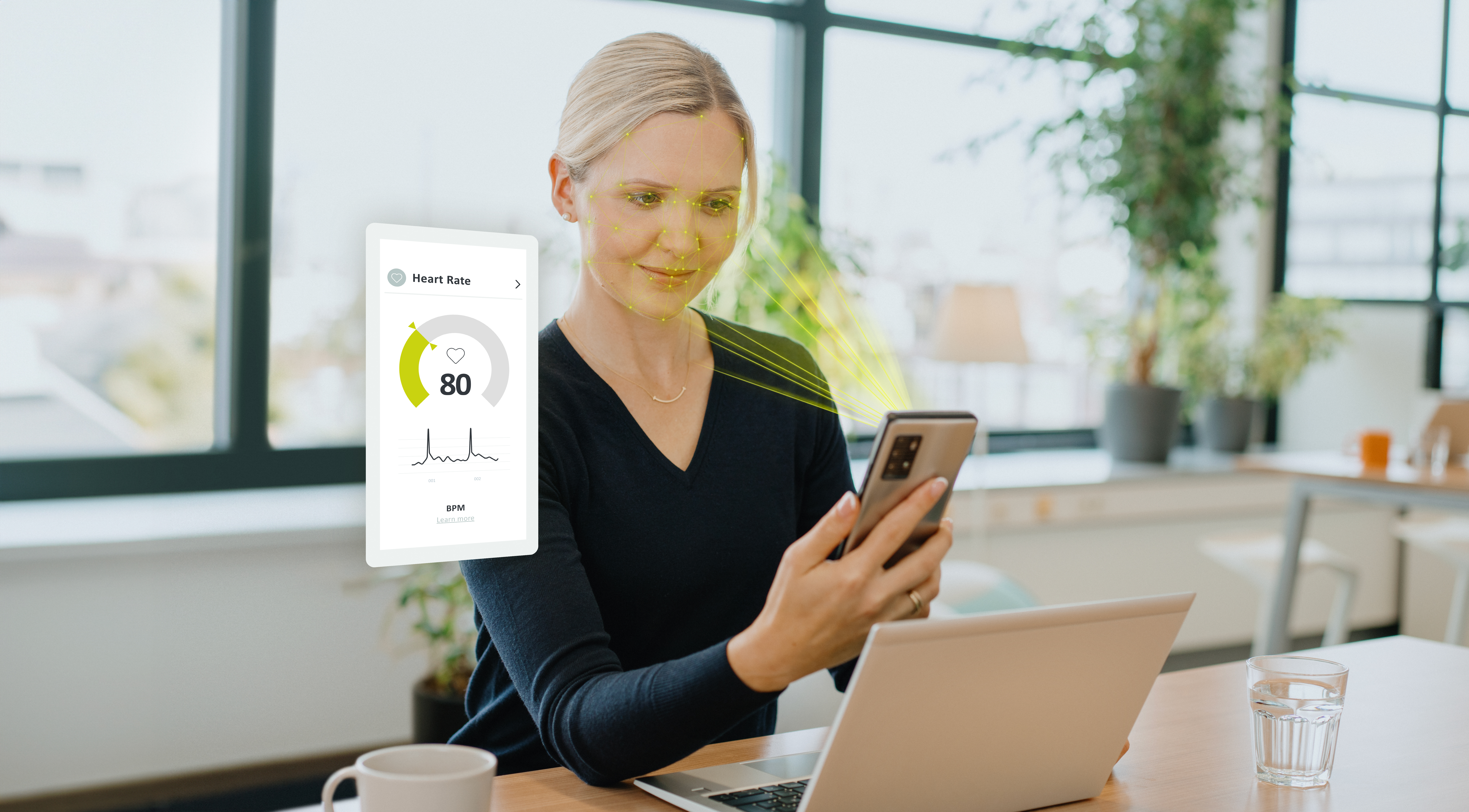 监测自己的身体并获取有关其状况的信息已经变得日益普遍。因此,这方面的要求也在增加:数据必须可靠,同时也要易于获取。借助创迈思的技术,智能手机、笔记本电脑和其他设备的用户将能够非接触式地监测自己的生命体征,并确保收到的信息经过科学验证。创迈思“光束轮廓分析”技术采用近红外辐射,不仅可以捕捉皮肤表面的参数,还可以到达皮肤下层,例如可以可靠地检测心率。